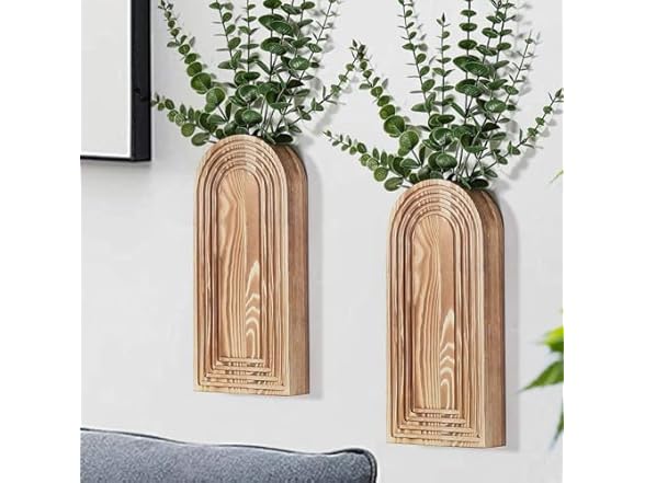 - (1) MATONELL 2 Pack Wooden Wall Vase Set, Brown Finish