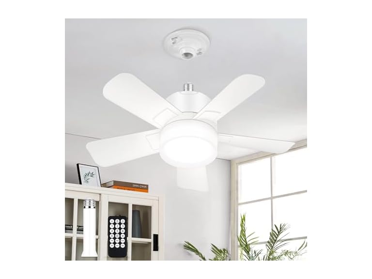 - Affordable Price & Great Performance: If you are looking for a cost-effective socket ceiling fan with light and remote to fill an empty E26 socket, this small fan light is a great choice. It allows you to enjoy a comfortable breeze and eye protecting lighting while consuming very little electricity. Moreover, with customizable dimming and adjustable color temperature from 3000-6000K, create a personalized, inviting ambiance at your fingertips.