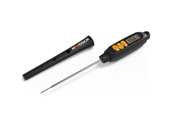 - Maverick Digital Instant Read Thermometer, Thin Tip 1.8mm Probe, Fast Accurate Readings, Stainless Steel Long Stem, Sheath-Handle Extension, Hold Function, for Grilling, Frying & Baking