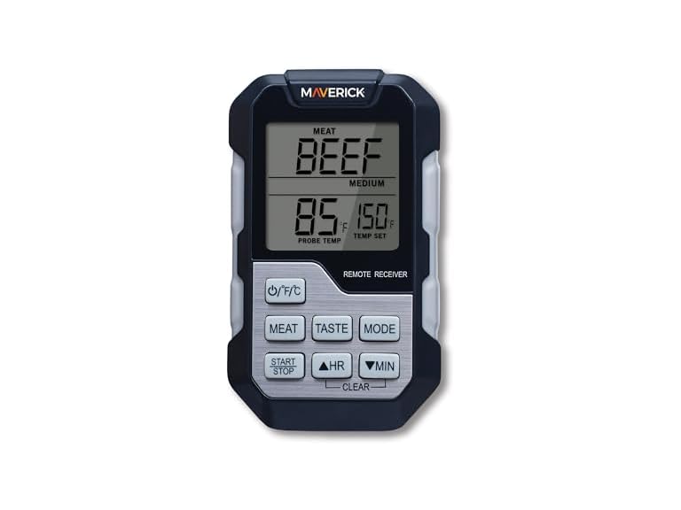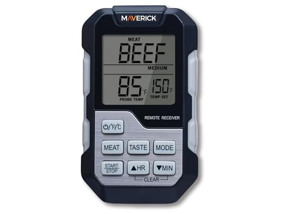 - Maverick Single Probe BBQ Thermometer & Timer, Pre-Programmed Temps for 9 Meats, Color-Changing Display, Heat-Resistant Probe (662°F), Count-Up/Down Timer, Audible & Visual Alerts, Magnetic
