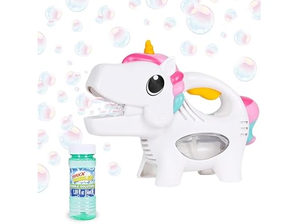 - EASY TO USE: Designed with young kids in mind, featuring a squeeze handle that's easy for little hands to activate. With just a quick squeeze, kids can make the unicorn open its mouth and release a flurry of bubbles. Please review the product instructions on the package.