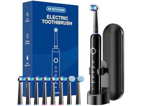 - 【8 Brush Heads for Better Access】Comes with 8 replacement brush heads (6 standard & 2 sensitive), perfectly suited for different tooth types. These compact heads fit easily into tricky areas—like the backs of molars and along the gumline—so you can sweep away plaque and food bits with ease. Perfect for kids, anyone with a smaller mouth, or those wearing braces.