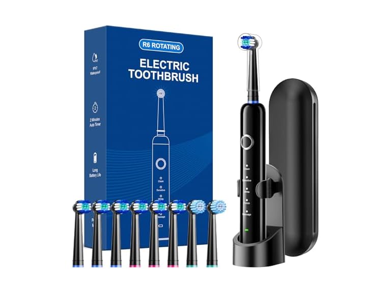 - 【2-Minute Timer & IPX7 Waterproof | Efficient Worry-Free Brushing】Built-in smart chip vibrates every 30s to remind quadrant switching and auto-shuts off after 2 minutes—following dentist recommendations to avoid missed spots or over-brushing that harms gums. IPX7 full-body waterproofing allows safe shower use and tap rinsing. Compact, portable, it fits the travel case for business trips or vacations, safeguarding oral health anytime, anywhere.