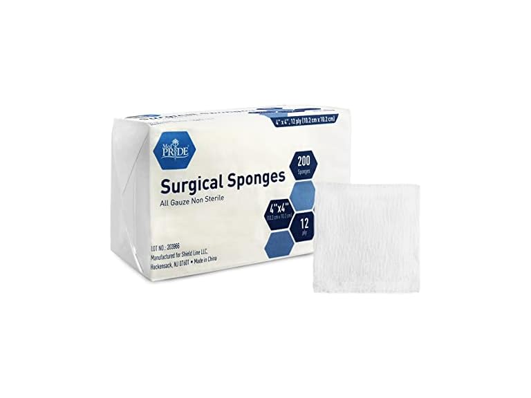 - (1) MED PRIDE 4”x 4” Gauze, 200 Surgical Sponges 12-ply Extra Absorbent | All-Gauze, Non-Sterile| Great for Wound Dressing, Prepping, Scrubbing & Cleaning| Essential First-Aid