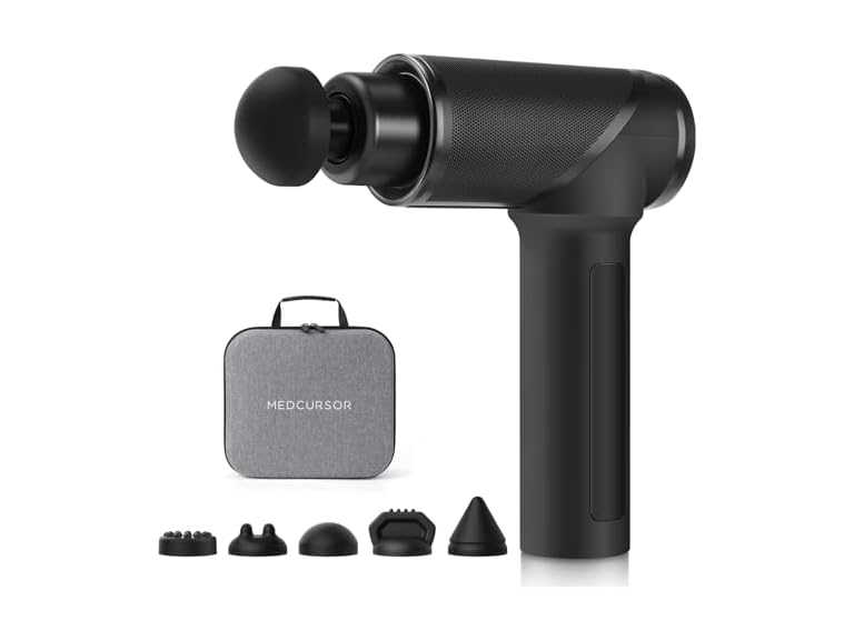 - 5 Replaceable Massage Heads: This Medcursor Massage Gun comes with 5 interchangeable massage heads: shovel, bump, bullet, ball, and flat heads, fully customizable to fit your diverse needs. Gift-ready packaging makes it a perfect gift for athletes and fitness lovers, ideal for Christmas, Father’s Day, Mother’s Day, and birthdays.