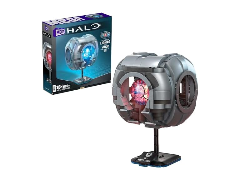 - (1) MEGA Halo Model Replica Building Toy, 343 Guilty Spark with 609 Pieces, Lights & Sounds, Build & Display Set for Collectors, Gift Ideas for Adults