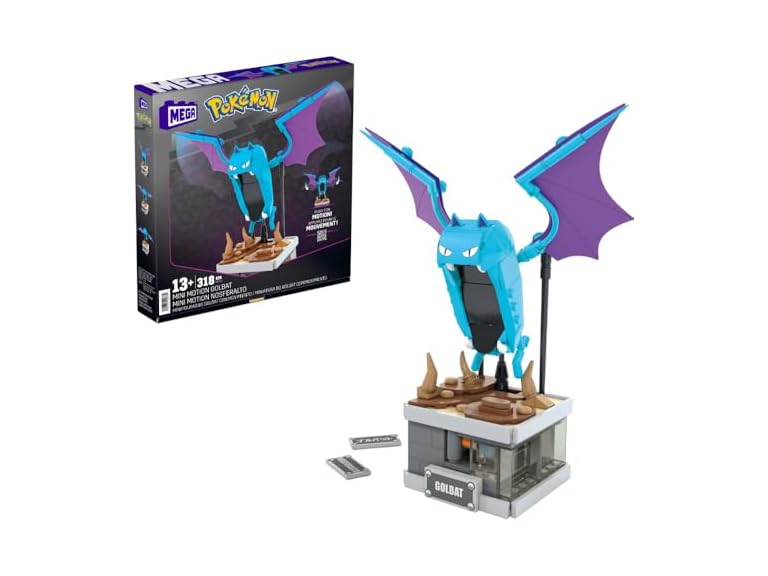 - (1) MEGA Pokémon Building Toys Set Mini Motion Golbat with 313 Pieces, Wing Flapping Motion, 5 Inches Tall, for Adult Collectors