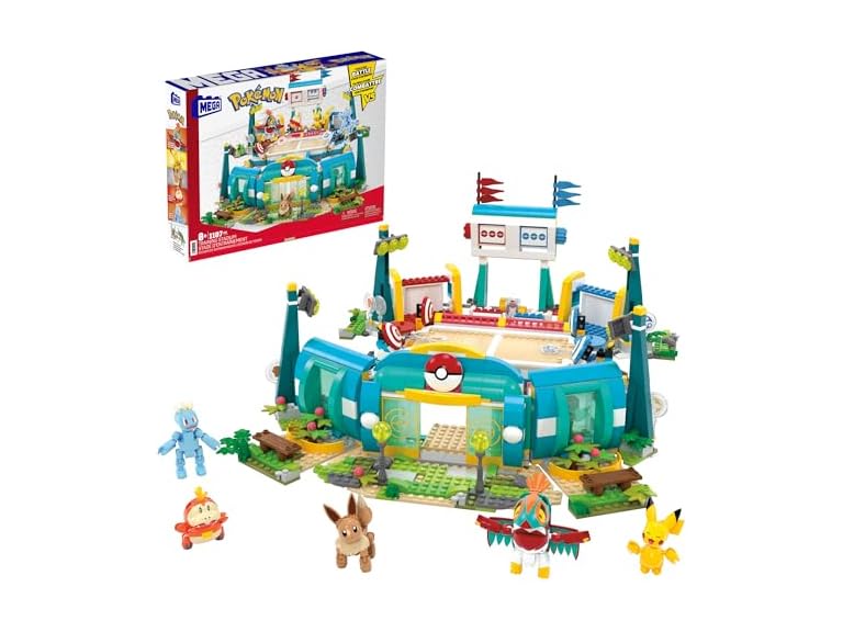 - (1) MEGA Pokémon Building Toys Set Training Stadium with 1101 Pieces, 5 Poseable Characters and Battle Play, for Kids