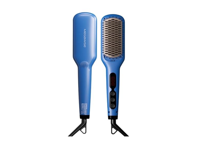 MEGAWISE Pro Ceramic Ionic Hair Straightener Brush Blue