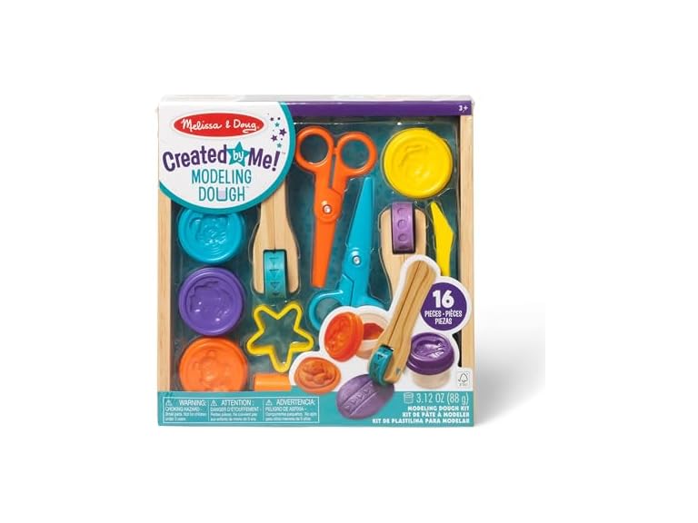 - (1) Melissa & Doug Created by Me! Cut, Sculpt, and Roll Modeling Dough Kit with 8 Tools and 4 Colors of Modeling Dough