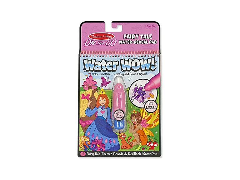 - The On the Go Water Wow! Fairy Tale Reusable Water-Reveal Activity Pad is a fairytale-themed watercolor book that includes 4 reusable pages and comes with a refillable water pen.