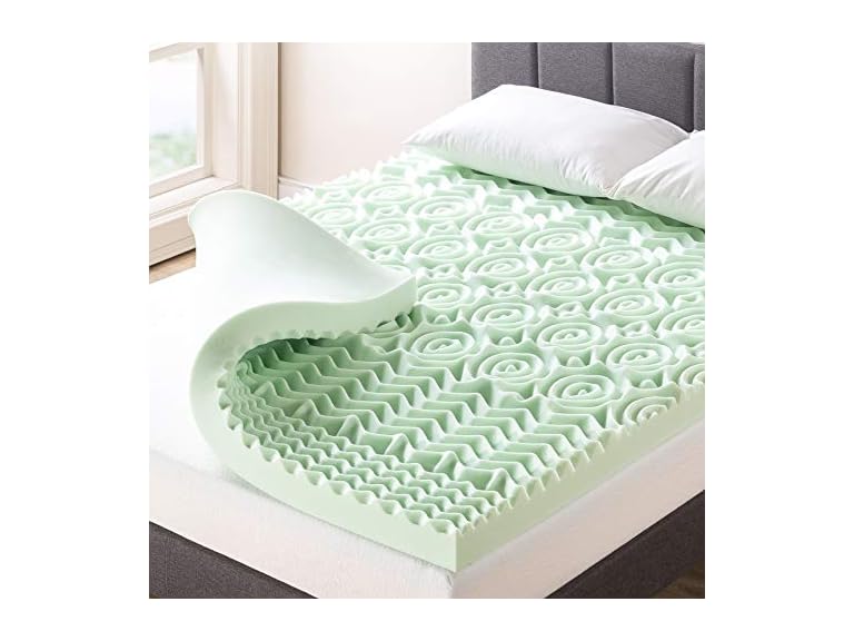 - (1) Mellow 4 Inch 5-Zone Memory Foam Mattress Topper, Calming Green Tea Infusion, Twin