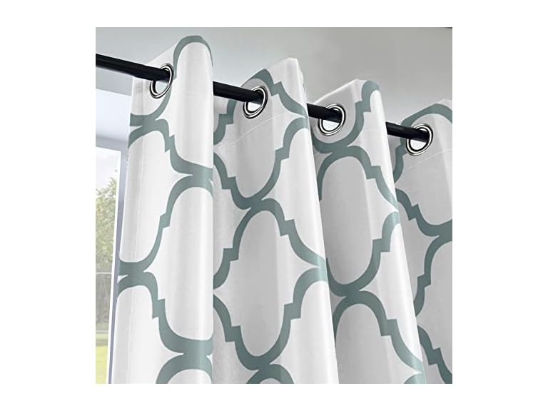 - (1) Melodieux Moroccan Fashion Thermal Insulated Grommet Room Darkening Curtains for Living Room, 52 by 63 Inch, Off White/Dusty Teal (1 Panel)