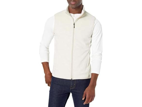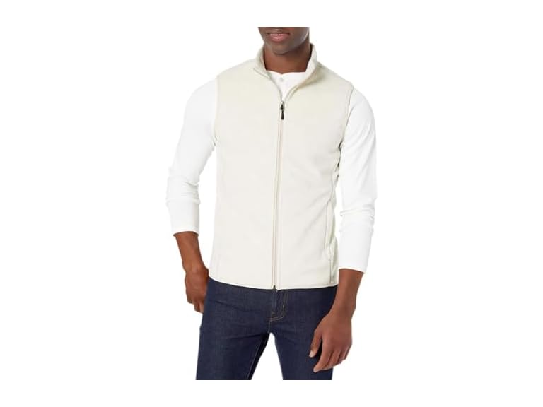 - (1) Amazon Essentials Men's Full-Zip Polar Fleece Vest (Available in Big & Tall), Oatmeal Heather, X-Small
