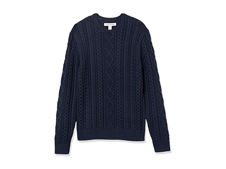 - (1) Amazon Essentials Men's Long-Sleeve 100% Cotton Fisherman Cable Crewneck Sweater, Navy, Small