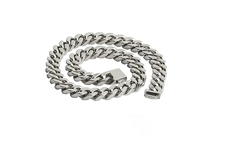 - (1) Men Necklace Cuban Chain Stainless Steel Jewelry Chunky Miami Hip Hop Big Encryption Choker Chain Custom Available 7/9/11/13/15mm Width, Stainless Steel, No Gemstone