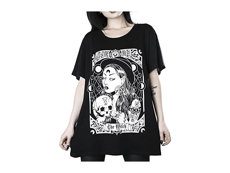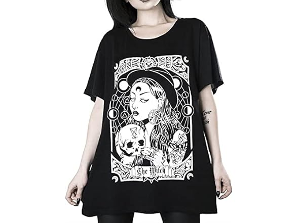 - (1) MEOKIM Gothic Women's T-Shirt Harajuku Loose ins Print Top Loose Plus Size Women T-Shirt Women