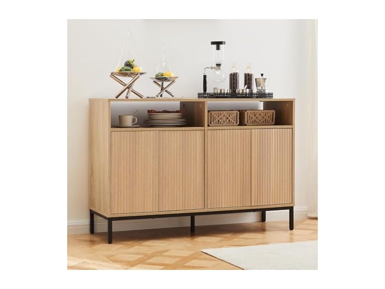 - (1) Mericonia Farmhouse Buffet Sideboard Cabinet with Storage, Fluted Coffee Bar with Doors and Adjustable Shelves, Modern Wood Console Cabinet for Kitchen, Livingroom (Fluted 4 Door, Natural)