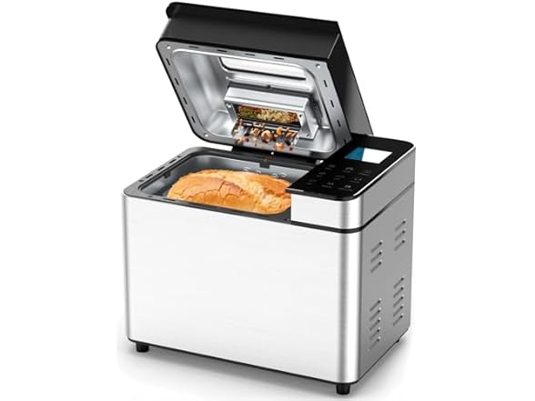 - Touchscreen Display & Visible Lid: This bread machine features an intuitive touchscreen for one-touch program selection—just add ingredients and press start. Its transparent lid lets you monitor the baking process in real time, enabling adjustments for perfect results.