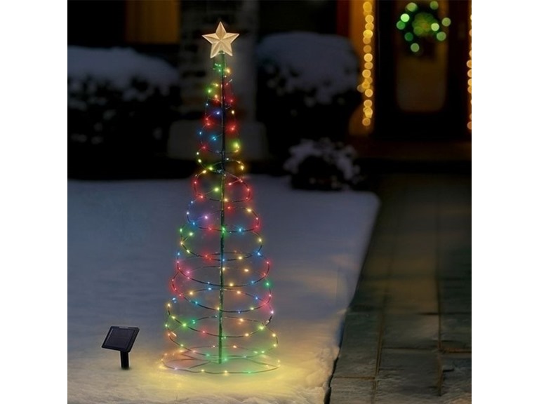 This Christmas decoration featuring a sturdy metal construction and solar-powered LED lights can be used to decorate your driveway or yard.