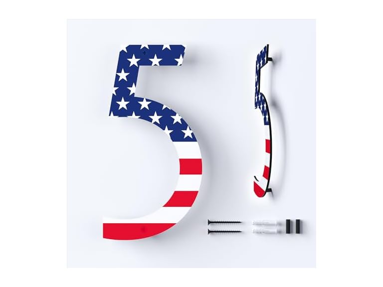 - (1) REINCARVATION 6 Inch Metal House Numbers with American Flag | Floating Metal Numbers for Mailbox | Modern House Numbers | | Metal Door Numbers | Rust-Proof Home (6 Inch, Number 5)