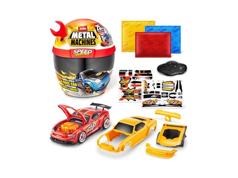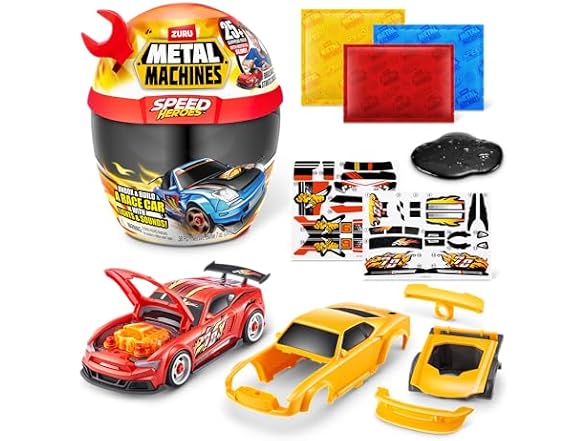 - Metal Machines Speed Heroes (Red) by Zuru, 20+ Surprises, Build your own Car, Two Bodies, Lights & Sounds, Slime