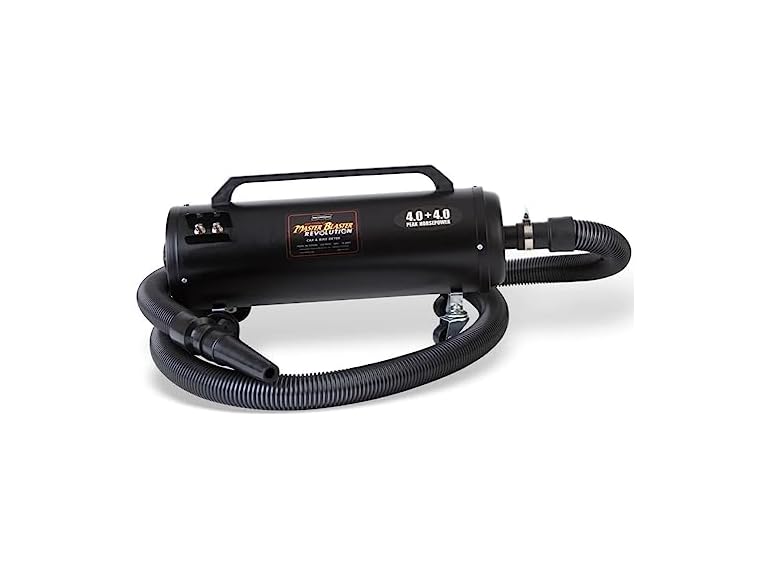 - AIR FORCE MASTER BLASTER CAR DRYER: With two 4.0 Peak HP Twin Fan Motors and a 30’ Heavy Duty hose, this dryer effectively removes fibers, dust, and debris from clothes, surfaces, or components.