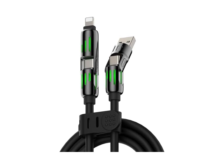 - All-in-One Charging Solution – 4-in-1 design with USB-C to USB-C, USB-C to Lightning, USB-A to USB-C, and USB-A to Lightning. Charge phones, tablets, laptops, and more with a single cable.