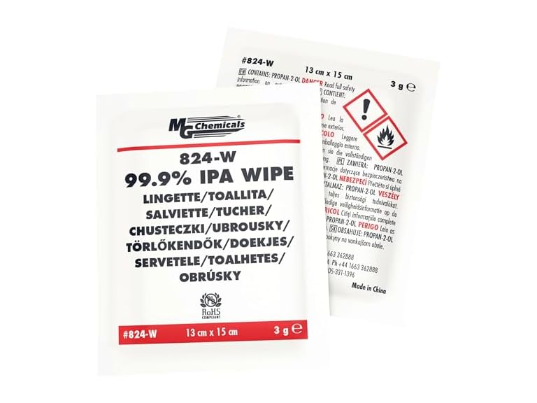 - MG Chemicals - 824-WX50 99.9% Isopropyl Alcohol Handy Wipe, 6" Length x 5" Width (Bag of 50)