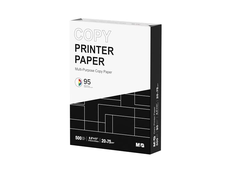 M&G Printer Paper 8.5 x 11 is designed as a high-performance, budget-friendly solution for everyday home and office printing. This 500-sheet ream delivers consistent, jam-free output across laser printers, inkjet printers, copiers, and fax machines. Its 95 brightness rating provides sharp, clear contrast suitable for internal documents, black-and-white printing, forms, manuals, and professional drafts. The smooth 20 lb weight ensures excellent toner and ink absorption with fast drying to minimize smearing and enhance clarity. Built with acid-free materials, the paper maintains whiteness, resists yellowing, and supports long-term archival use. Available in a single ream and soon in a cost-efficient 10-ream case, it offers reliable quality and value for both everyday and professional applications.