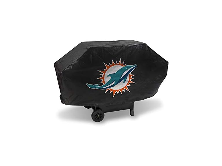 - (1) Rico Industries NFL Miami Dolphins Black Deluxe Grill Cover Deluxe Vinyl Grill Cover - 68" Wide/Heavy Duty/Velcro Staps