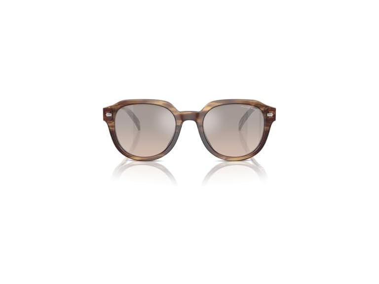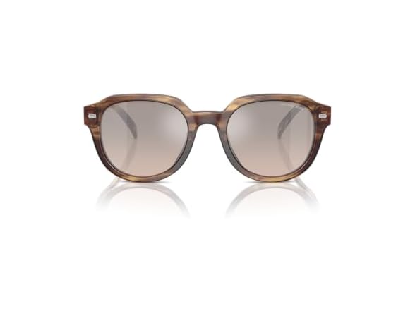 - FRAME FEATURES: MK2216U Eger Universal Fit feature a round, brown horn frame and brown gradient black mirrored lenses.