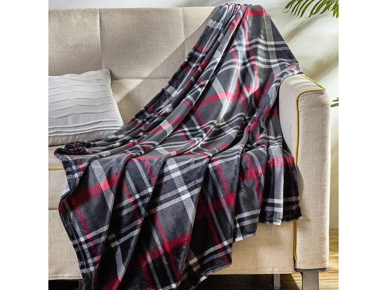 - (1) Luxury Home Midnight Plaid Throw Blanket 50 x 60 Inches – Cozy Fleece Blanket for Couch, Sofa & Bed – Soft Decorative Throw for Chilly Nights