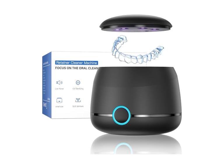 - (1) Ultrasonic Retainer Cleaner, 45kHz Denture Cleaner Machine, 5min and 10min Modes with Rechargable Top Cover, 200ml Dental Cleaning Pod, MouthGuard Cleaner for Aligner NightGuard Jewelry(Black)