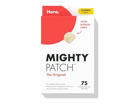(1) Mighty Patch Original Patch from Hero Cosmetics - #1 Hydrocolloid Acne Pimple Patches for Face, Shrinking Zits & Whiteheads in 1 Use, Nighttime Spot Pimple Stickers for Face, 75 Count