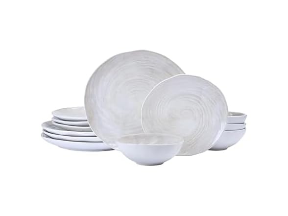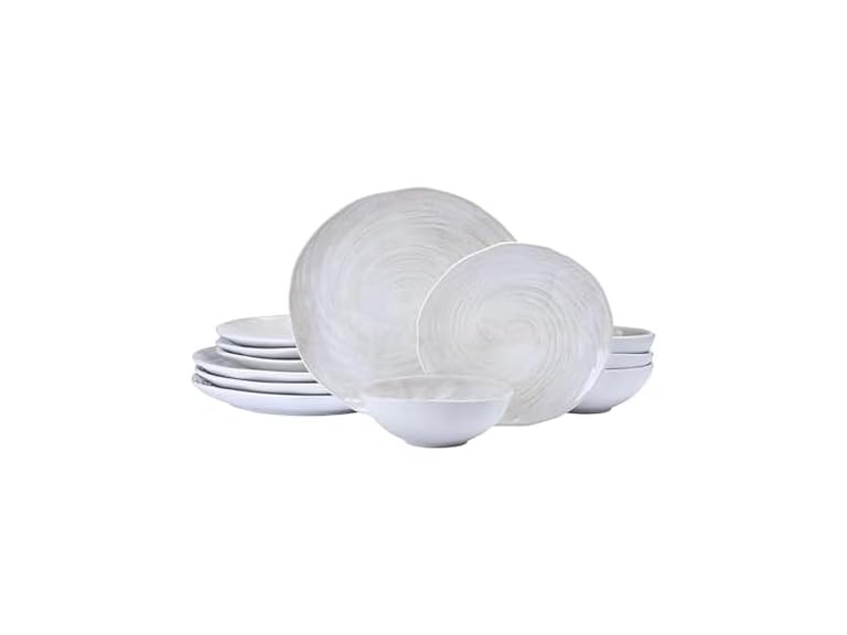 - Mikasa Harley 12 Piece Stoneware Hand-Crafted Dinnerware Set, Service for 4, Plate and Bowl, Modern with Organic Freeform Shape, White