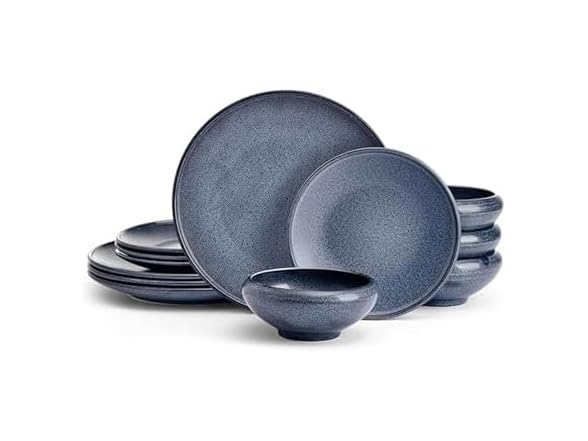 - (1) Mikasa Rylan 12 Piece Dinnerware Plate Bowl Set, Service for 4, Blue