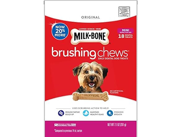 - (1) Milk-Bone Original Brushing Chews, 18 Mini Daily Dental Dog Treats