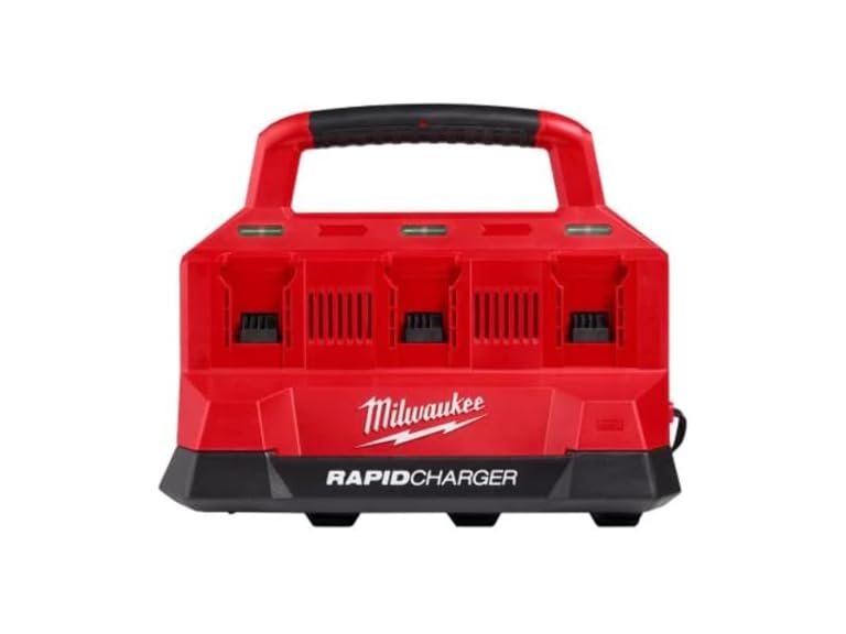 The MILWAUKEE M18 PACKOUT Six Bay RAPID Charger is the first dedicated charging solution compatible with MILWAUKEE PACKOUT modular storage system. This Six Bay RAPID Charger charges two batteries simultaneously, up to 40% faster than other Milwaukee Tool standard rate chargers. Manage six batteries and consolidate your charging experience. Spend less time swapping batteries on the jobsite. This battery charger is optimized for transportation and storage on and off the jobsite. Integrate this charger into your PACKOUT modular storage system, and experience unmatched charging portability. Bring this charger with you, either on your PACKOUT stack or by utilizing the convenient carrying handle.