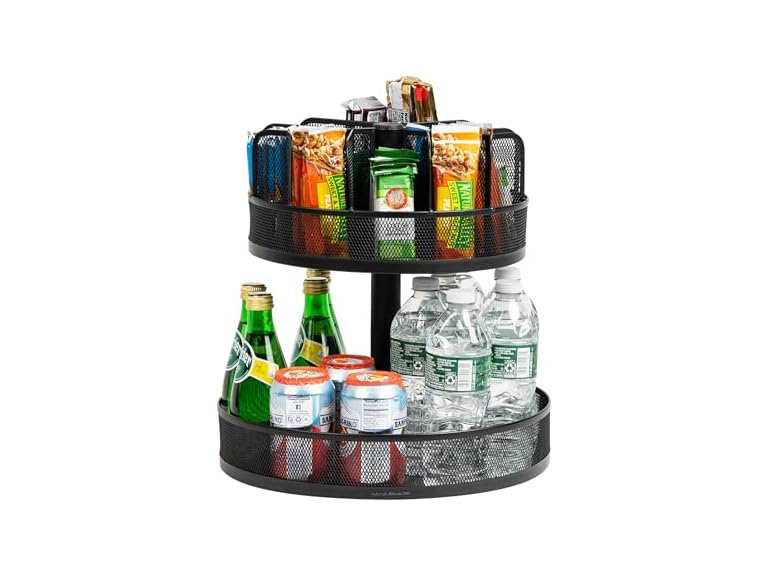 - (1) Mind Reader 2-Tier Snack Carousel, Countertop Organizer, Snack Tray, Breakroom, Kitchen, Black