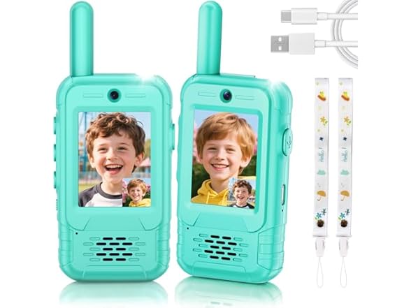 - Eco-friendly & Rechargeable Walkie Talkies: Our toddler walkie talkies is made of safe, non-toxic, and sturdy materials. Its size is perfect for small hands and comes with two anti-loss lanyards, Our walkie-talkies also feature a back clip for easy carrying and use. rechargeable walkie talkies for kids allow them to enjoy a smooth calling experience anytime, anywhere. This walkie talkie with camera is the perfect companion for outdoor games, family hikes, or birthday parties.