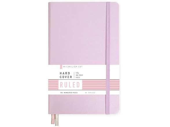 - (1) Minimalism Art, Premium Hard Cover Notebook Journal, Medium Size, A5 5.8" x 8.3", 186 Numbered Pages, Gusseted Pocket, Ribbon Bookmark, Extra Thick Ink-Proof Paper 120gsm (Wide Ruled, Pink)