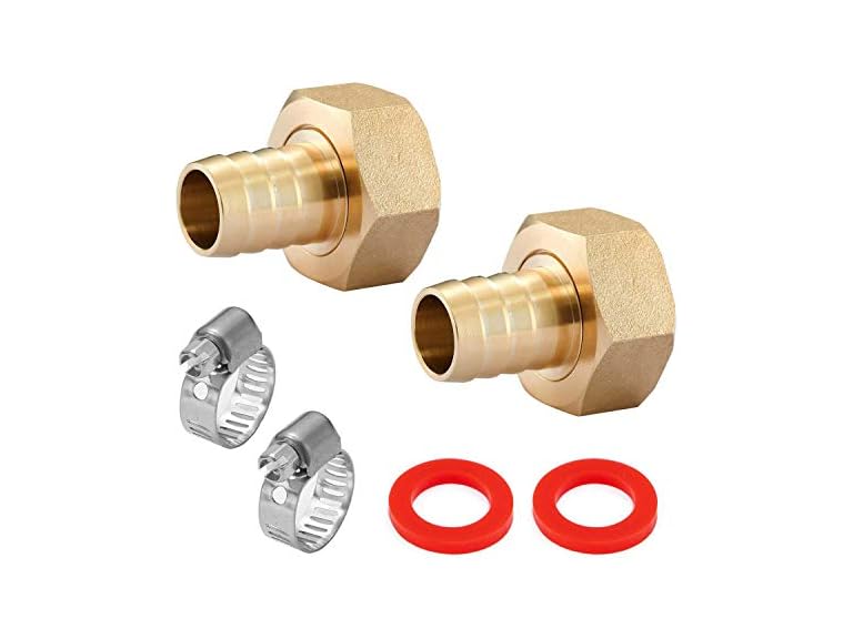 - Minimprover 4PCS Premium Brass Water Hose Pipe Swivel Connector,5/8" Barb x 3/4 inch Female GHT Adapter,Copper Fitting with Stainless Clamp for House/Boat/Lawn/Power Wash/Irrigation