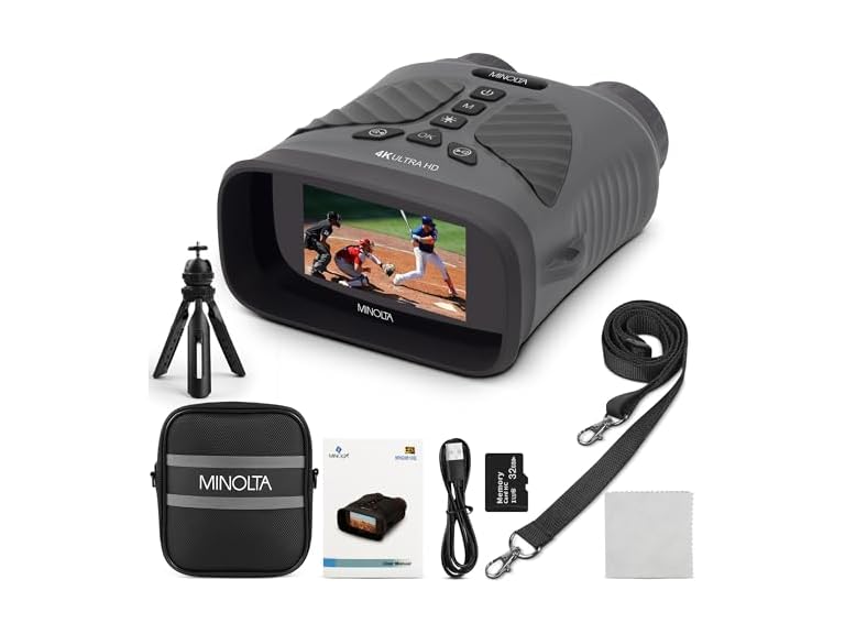 Minolta 10x25 Digital Night Vision Monocular w/Built-in 4K HD Video Camera (Gray)