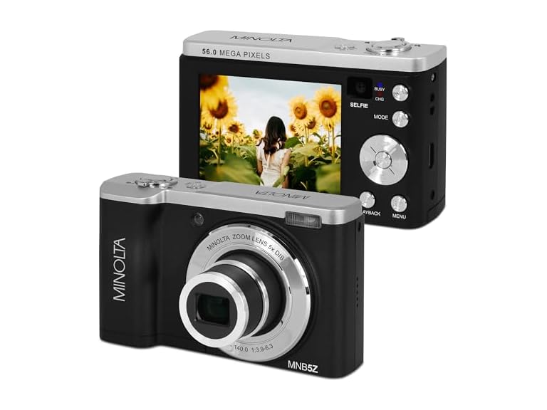 Minolta 56MP Dual Lens Digital Camera – 5X Optical Zoom, 5K (Open Box)