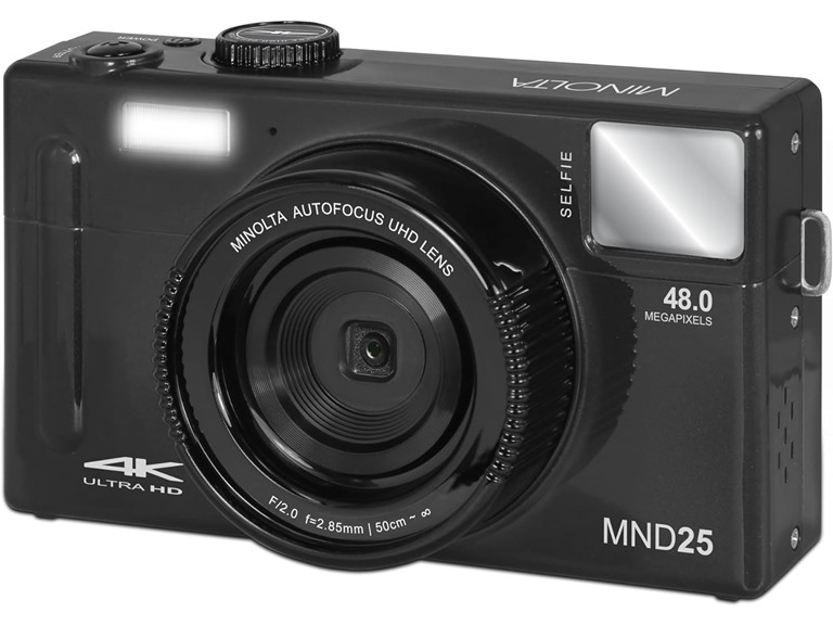 - Minolta MND25 48MP Autofocus 4K Ultra HD Camera w/Selfie Mirror