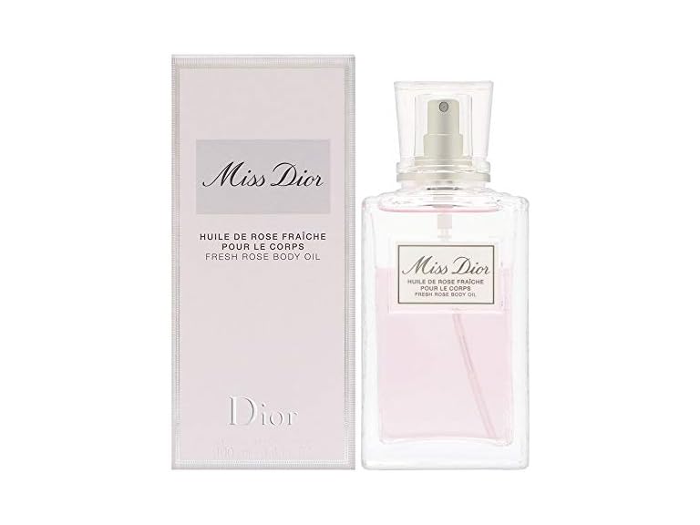 - Miss Dior by Christian Dior for Women 3.4 oz Fresh Rose Body Oil: Buy Christian Dior Bath Body Oils - This dual-action rose oil tones and nourishes skin and hair. Shake the bottle to activate the two phases: Centifolia rose water adds a light, fresh quality to the dry oil for a satiny finish with no oily residue. It protects skin and hair while intensifying the scent of Miss Dior fragrance. Details provided by Dior