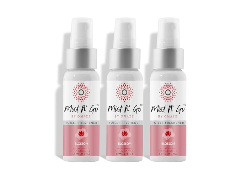 - (1) Mist N‚ Go by Omaze Travel Bathroom Spray for Toilet Spray Odor Eliminator - Travel Toilet Spray for Bathroom Air Freshener Spray for Bathroom Deodorizer - Blossom Regular Size (2oz x3)