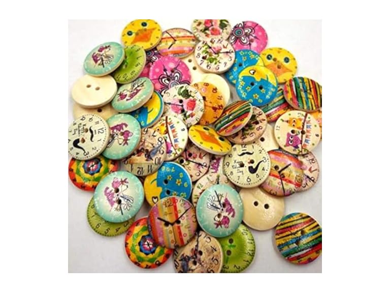 - (1) DNHCLL 50 PCS 20MM 2-Hole Mixed Random Colorized Wooden Clock Style Buttons Used for DIY Craft and Sewing Scrapbooking