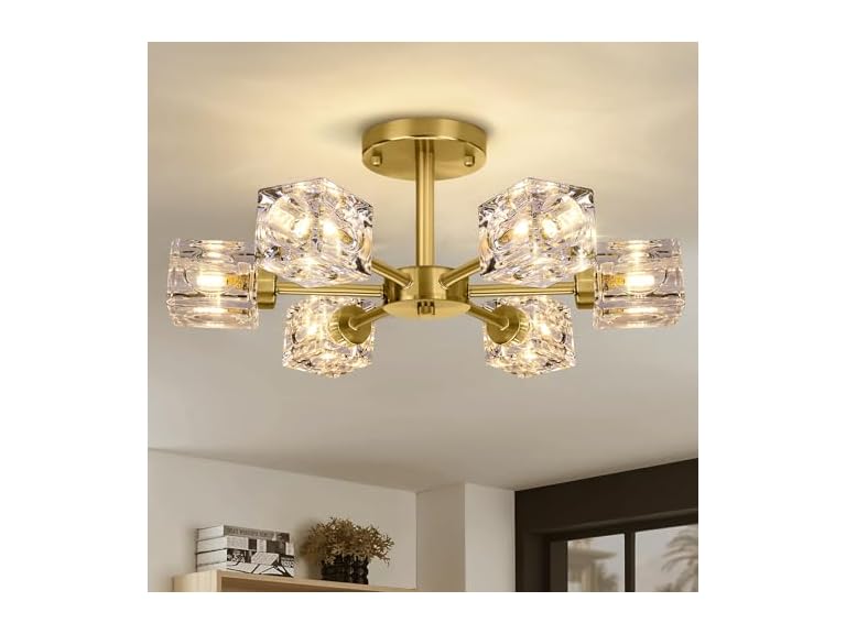 - Unique Innovative Design: Our gold dining chandelier can be used as a chandelier or a ceiling light. Finely crafted with premium square clear crystals and gold paint technology, this farmhouse chandelier not only provides beautiful lighting, but also an eye-catching work of art! Enhance your decor and show off your extremely gorgeous style